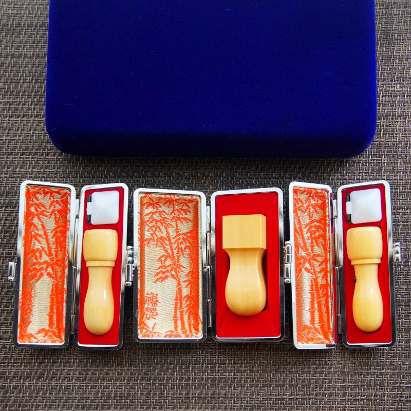 手彫り 印鑑 柘 法人印 認印 と 角印 3本セット ケース付き : 印章 判子 ハンコ