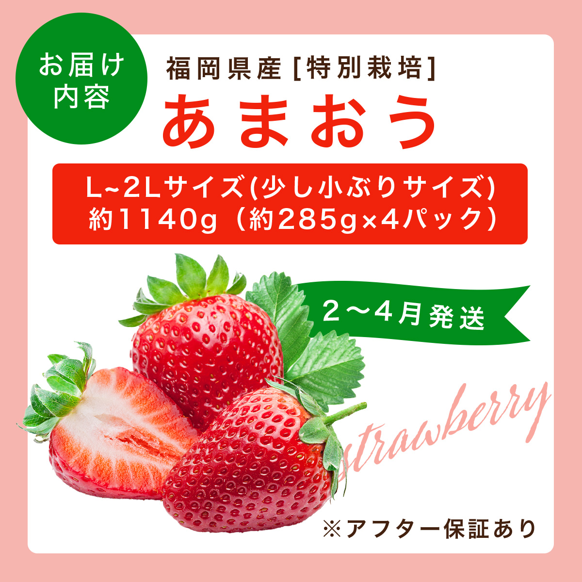 - いちご 福岡県産 特別栽培 あまおう L~2Lサイズ(少し小ぶりサイズ) 約1140g(約285g×4パック)【2~4月発送】