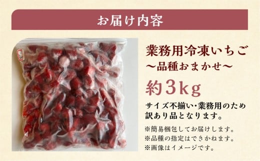 【2026年5月より発送】 《 業務用の大袋 》 加工向きな 冷凍いちご 品種おまかせ 3kg 簡易梱包 サイズ 不揃い のため 訳あり 訳アリ フルーツ 果物 苺 いちご イチゴ 紅ほっぺ よつぼし かおり野 アイス ヨーグルト シャーベット 苺 family農園watanabe 子ども 家庭用 業務 加工向け 国産 産地直送 岐阜県 本巣市 15000円 [mt1562]
