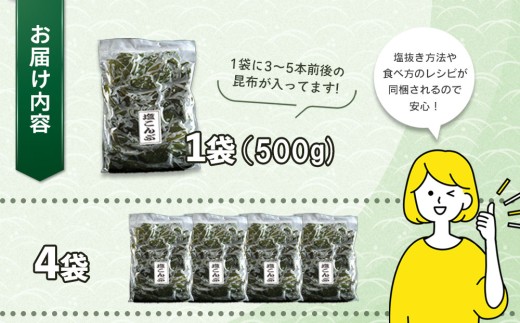 - fc-72-020 三陸釜石・漁師直送 湯通し塩蔵昆布 (500g×4袋) 両石港 隆丸