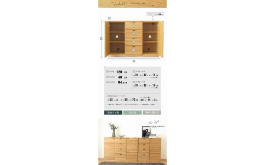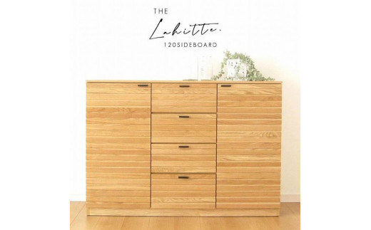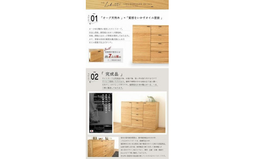 - 120幅 サイドボード オーク 国産 日本製 大川家具 完成品 天然木 木製 サイドボード キャビネット リビングボード ルーバー 格子 ナチュラル