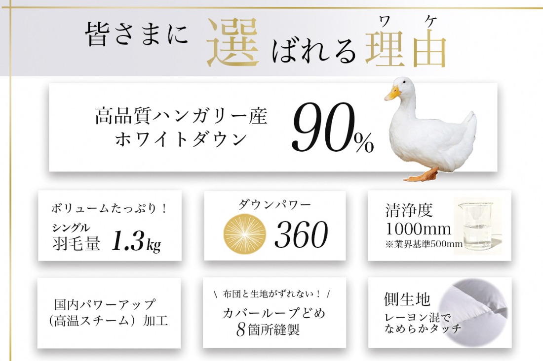 - 【パウダーグレー】軽くて暖か 羽毛布団 本掛け シングル ハンガリーホワイトダウン90% DP360 羽毛ふとん 掛け布団 掛布団|アクア