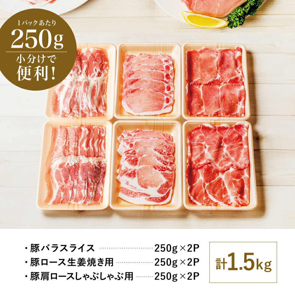 【ふるさと納税】★累計29万セット突破★ 鹿児島県産豚3種類 計1.5kgセット - セット内容・発送時期が選べる - レビューキャンペーン実施中 しゃぶしゃぶ 炒め物 (バラスライス・肩ロース・生姜焼き用) 小分けパック 冷凍 薄切り カミチク 南さつま市 送料無料