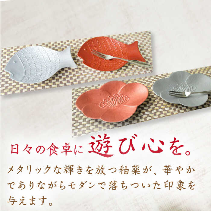 - 【ふるさと納税】【有田焼】錦雲母 シルバー・朱 変り銘々皿 4種セット /宮崎陶器[UBE013] 有田焼 器 やきもの 皿 食器