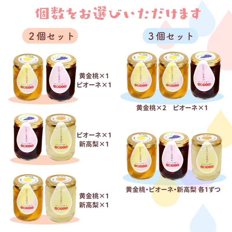 - 【ふるさと納税】数が選べる 果物 コンポート 黄金桃 ニューピオーネ 新高梨 ジューシーコンポート 2個セット 3個セット 桃 ピオーネ 梨 和梨 フルーツ ギフト 贈答用 おいしい 岡山