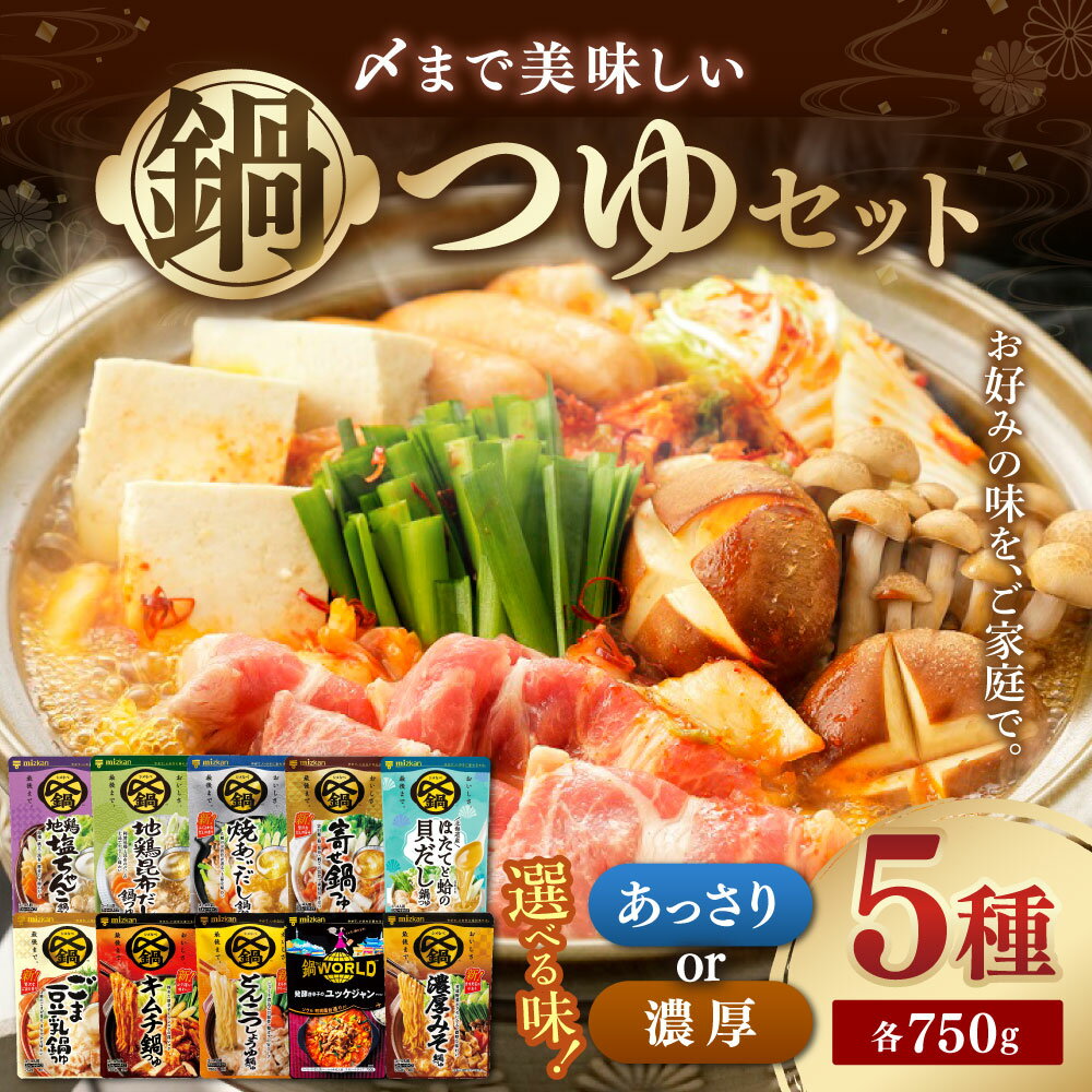 - 【ふるさと納税】《TVで紹介》〈選べる鍋の素〉ミツカン 鍋つゆ セット あっさり / 濃厚 ( 地鶏塩ちゃんこ ・ 地鶏昆布だし ・ 焼きあごだし ・ほたてと蛤 / ごま豆乳・キムチ・とんこつしょうゆ ・ ユッケジャン ) mizkan 鍋つゆ お鍋 鍋 ちゃんこ鍋 締めラーメン