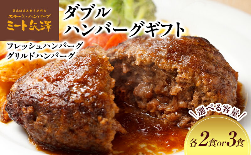 - 【ふるさと納税】ハンバーグ ミート矢澤 ダブルハンバーグギフト【選べるセット数/各2食セット各3食セット】 黒毛和牛 肉汁 和風醤油 オリジナルソース 専門店 赤身肉 サーロイン シャトーブリアン ジューシー 大田区 東京都