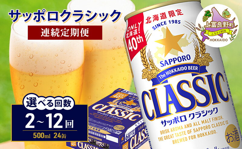 - 【ふるさと納税】サッポロクラシック ビール 定期便【選べる回数】500ml×24缶 [2回~12回] 缶ビール お酒 酒 サッポロビール 生ビール 飲み物 ギフト プレゼント お土産 贈答用 家のみ 晩酌 上富良野町 北海道