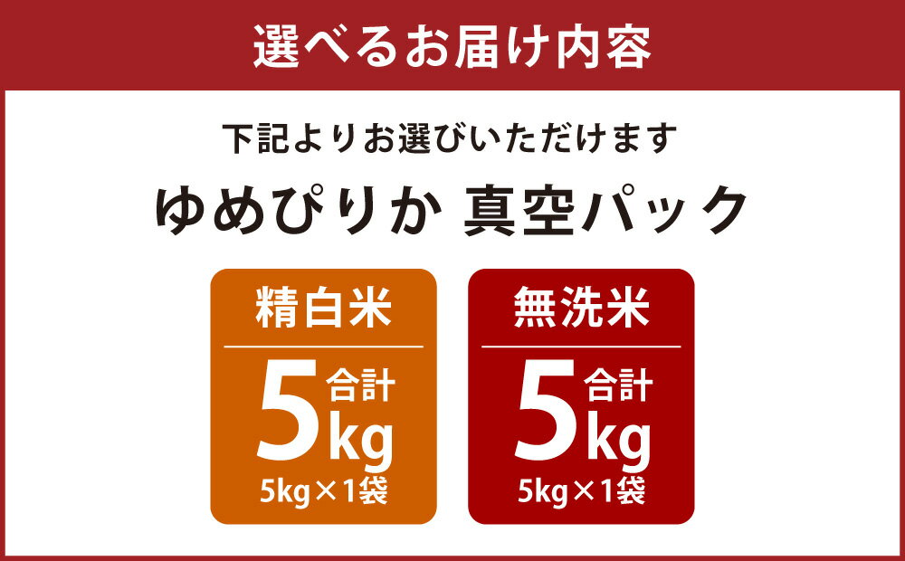 - 【ふるさと納税】<選べる種類>【令和7年産】 ゆめぴりか 精白米 / 無洗米 北海道 米 を代表する人気の品種 真空パック 5kg×1袋 お米 米 こめ コメ 単一原料米 ごはん ご飯 お弁当 おにぎり 北海道産 国産 北海道 鷹栖町 送料無料