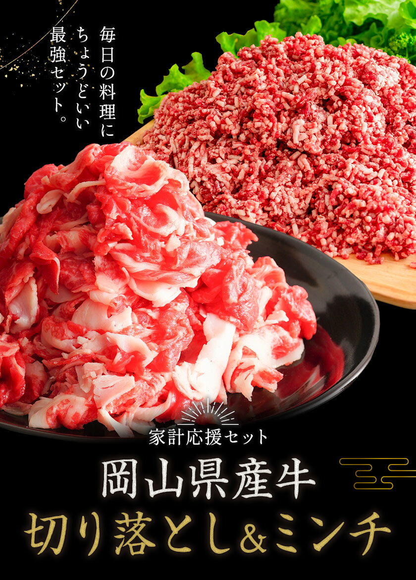 【ふるさと納税】牛肉 国産 切り落とし ミンチ セット 家計応援 岡山県産牛 交雑牛 選べる 1kg 2kg 3ヶ月定期便 6ヶ月定期便 小分け 1パック250g お試し 大容量《60日以内に出荷予定(土日祝除く)》岡山県 矢掛町 肉 こま切れ ひき肉 お取り寄せグルメ 定期便は翌月から発送