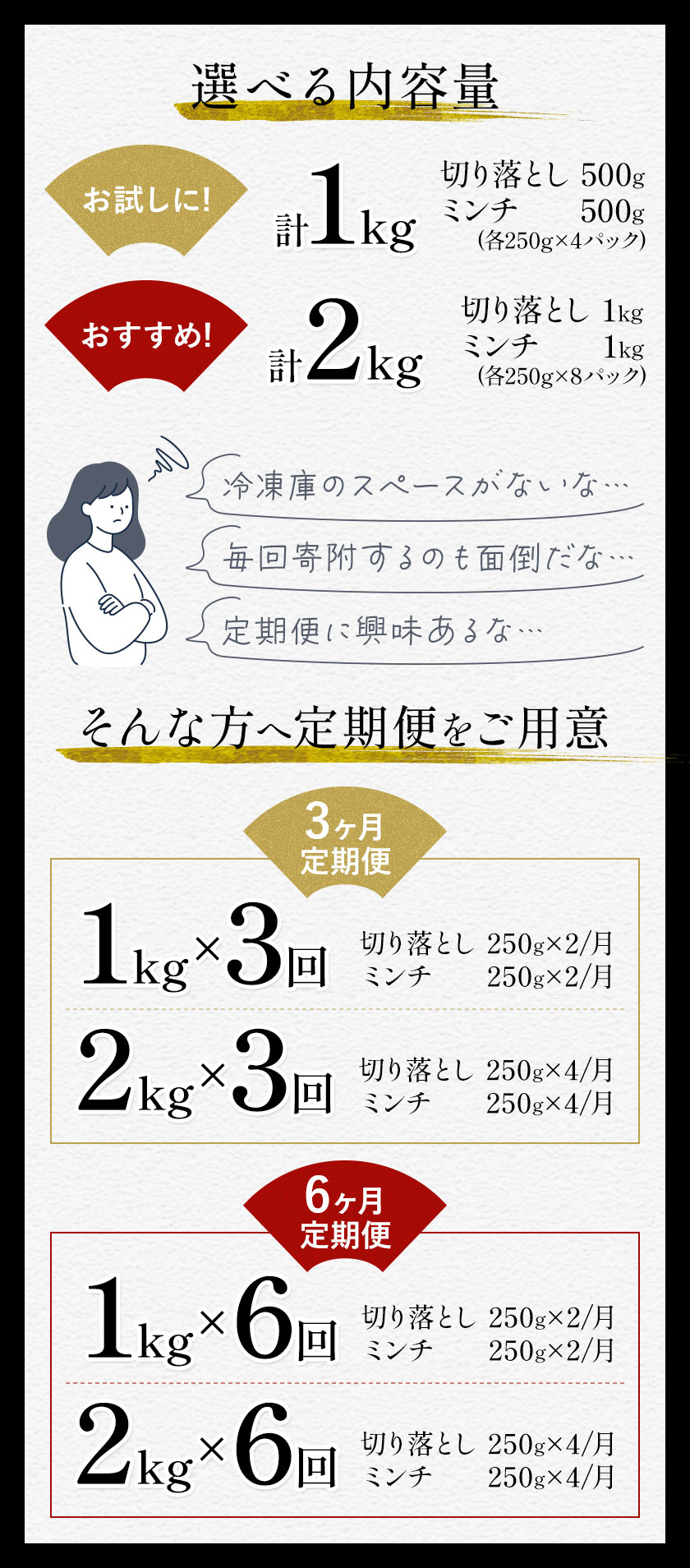 - 【ふるさと納税】牛肉 国産 切り落とし ミンチ セット 家計応援 岡山県産牛 交雑牛 選べる 1kg 2kg 3ヶ月定期便 6ヶ月定期便 小分け 1パック250g お試し 大容量《60日以内に出荷予定(土日祝除く)》岡山県 矢掛町 肉 こま切れ ひき肉 お取り寄せグルメ 定期便は翌月から発送