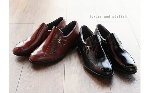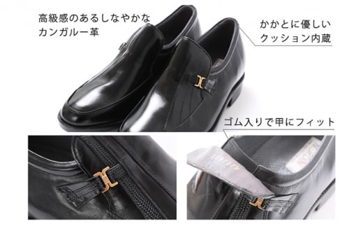 - カンガルー革 ビジネスシューズ 紳士靴 Uモカ スリッポン 5cmアップ 4E ワイド No.635 ブラック 24.0cm [№5990-8083]0344