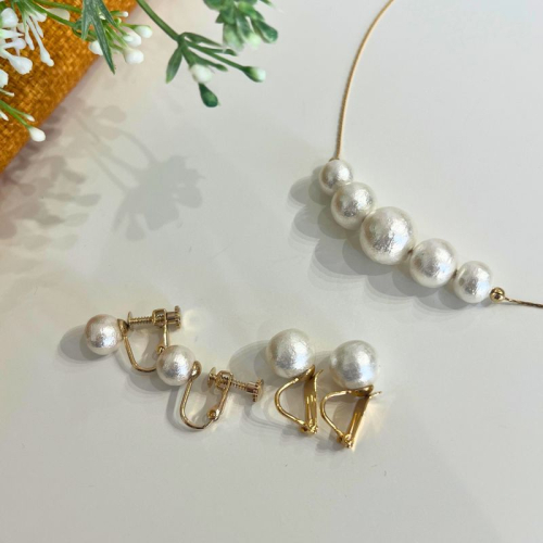 - コットンパール「ホワイト」ゴールドチェーンネックレスとイヤリング2点セット | 結婚式 二次会 パーティー 入学式 卒業式 華やか