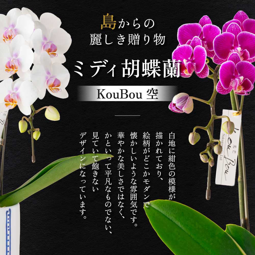 【ふるさと納税】ミディ胡蝶蘭 KouBou 空 2本立ち 蘭 ラン 洋蘭 ミディサイズ 観賞用 贈答用 和モダン インテリア 植物 コチョウラン ランダム 花 株式会社なかがわ