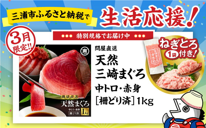 - 【ふるさと納税】【期間限定 生活応援 ネギトロ付き】 とにかくまぐろの質に自信あり 問屋直送 天然三崎まぐろ 1kg 中トロ 赤身 マグロ 鮪 メバチマグロ 赤身 刺身 魚 魚介 冷凍 おいしい 天然 数量限定 三崎恵水産 神奈川県 三浦市 おすすめ ランキング プレゼント ギフト