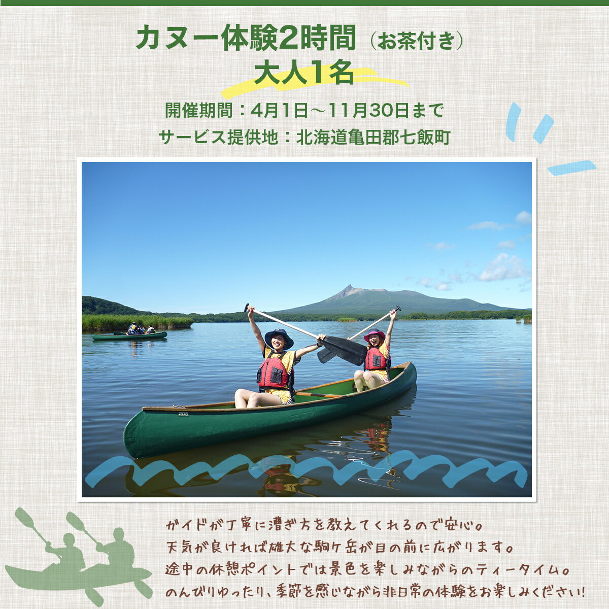 - 【ふるさと納税】カヌー体験2時間(お茶付き)大人 【 ふるさと納税 人気 おすすめ ランキング カヌー体験 カヌー かぬー 非日常 大沼 北海道 七飯町 送料無料 】 NABB001