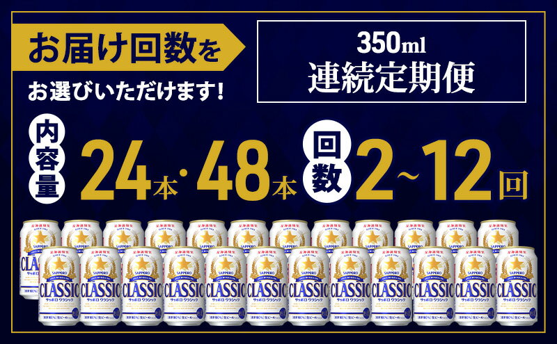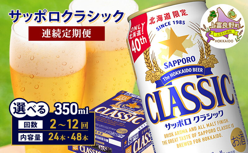 【ふるさと納税】サッポロクラシック ビール 定期便【選べる内容量・回数】350ml×[24or48缶] [2回~12回] 缶ビール お酒 酒 サッポロビール 生ビール 飲み物 ギフト プレゼント お土産 贈答用 家のみ 晩酌 上富良野町 北海道