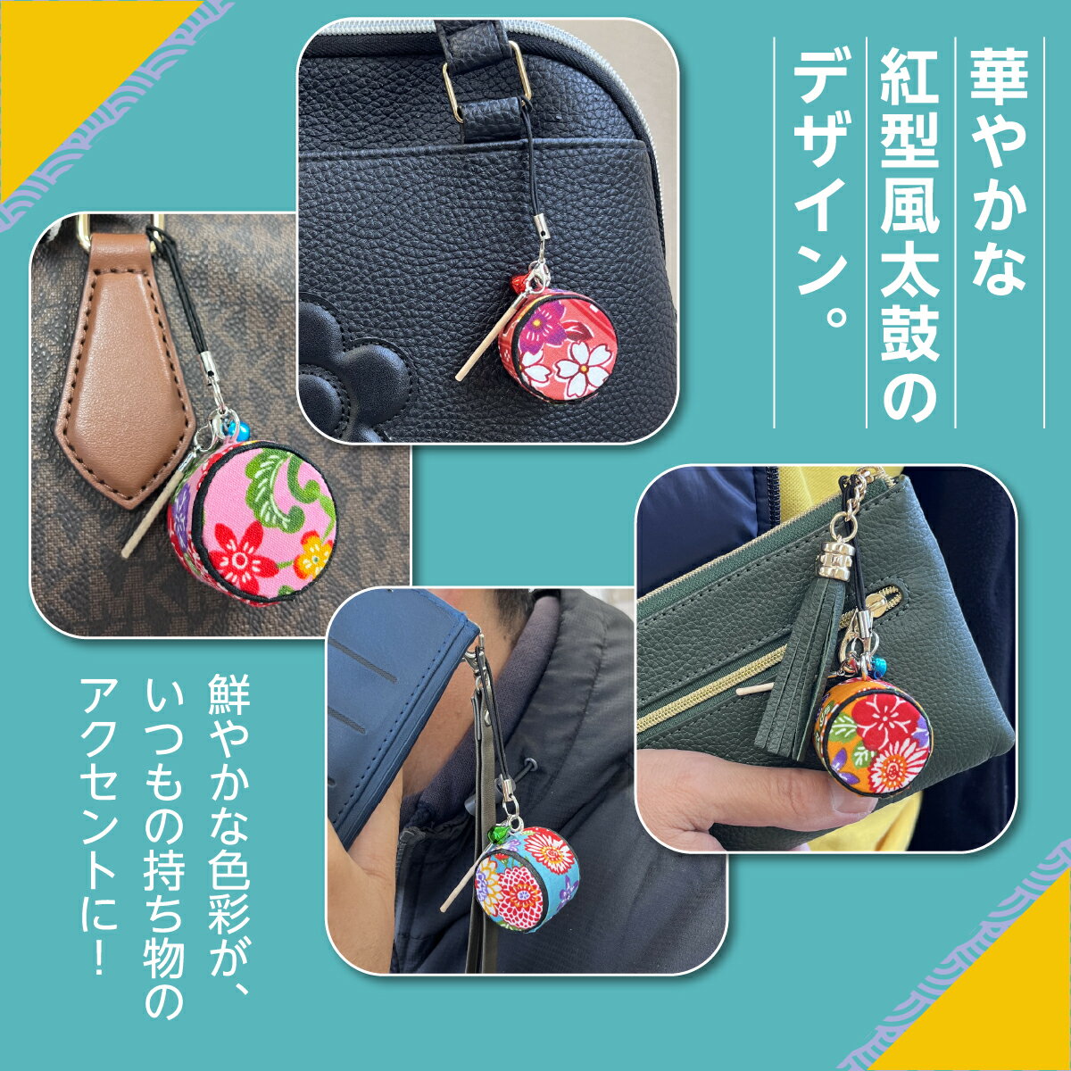 - 【ふるさと納税】 マース入りストラップ 紅型風太鼓 5個 | 障害者支援センター アップドウぎのわん | 琉球紅型柄 鮮やか カラフル | 魔除け お守り ハンドメイド 手作り | 沖縄 宜野湾市 送料無料