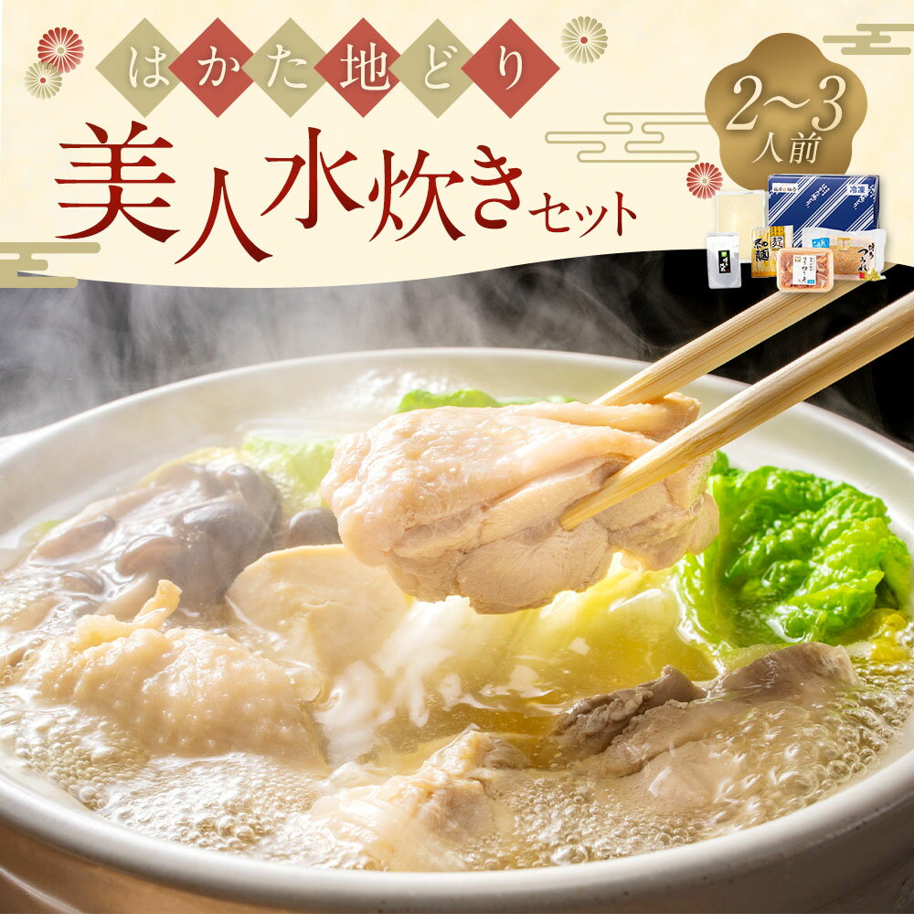 - 【ふるさと納税】福岡限定!はかた地どり美人水炊きセット 2~3人前 合計1.13kg 鶏もも切り身 鶏つみれ 麺 コラーゲンスープ 地鶏 鶏肉 お肉 水炊き お鍋 鍋料理 惣菜 ギフト 贈答 贈り物 冷凍 博多 福岡県 太宰府市 送料無料