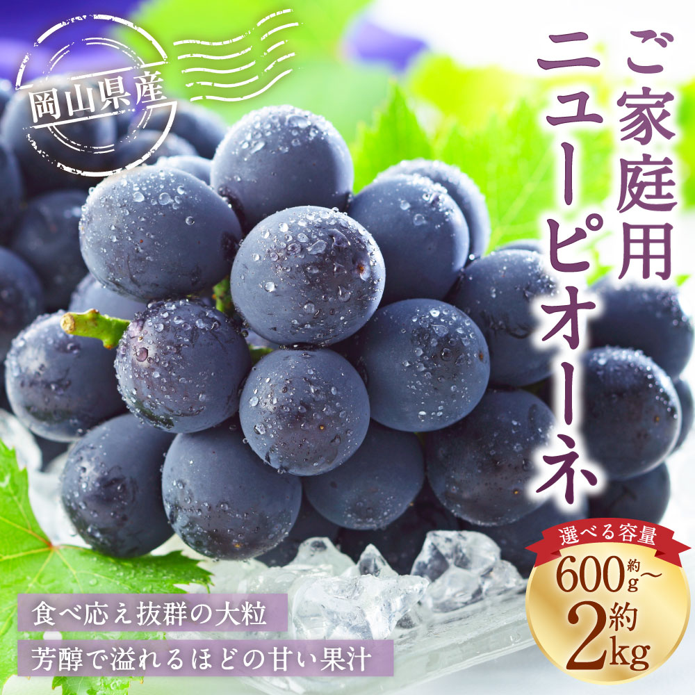 【ふるさと納税】ご家庭用 岡山県産 ニューピオーネ <選べる内容量> 約600g / 計約800g / 計約1kg / 計約1.5kg / 計約2kg ぶどう ブドウ 葡萄 種なし 種無し フルーツ くだもの 果物 果実 デザート 冷蔵 国産 岡山県 美咲町 送料無料 【2026年8月下旬~9月下旬発送予定】