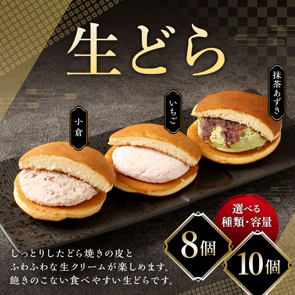 - 【ふるさと納税】<選べる種類・内容量>生どら 小倉 / 抹茶あずき / いちご 8個 / 10個 小豆 あずき 餡子 あんこ つぶあん 生クリーム イチゴ 苺 スイーツ デザート お菓子 和菓子 おやつ 冷凍 山形県 白鷹町 送料無料