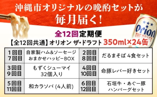 オリオンビール 晩酌セット 【全12回定期便】 沖縄市 TESIO だるまそば 豚々茶舗 DELICATESSEN NUCHIBUTA みやんちSTUDIO&COFFEE お肉屋本店 リカーショップコザ [BCZZ038] ビール 沖縄そば 焼売 レバー パテ おきなわそば 石垣牛 あぐー豚 ハンバーグ はんばーぐ ハム ソーセージ はむ そーせーじ びーる 晩酌 オリオンビール 沖縄県 沖縄市