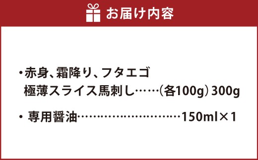 花びら馬刺し 3種 300g (各100g×3) 専用醤油1本 赤身 霜降り フタエゴ