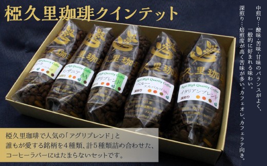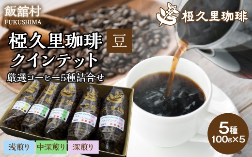 - -豆- 椏久里珈琲クインテット(厳選コーヒー5種詰合せ)【 ふるさと納税 人気 おすすめ 珈琲 コーヒー コーヒー豆 粉 カフェ セット 本格 復興 福島 飯舘村 】ITTAD014