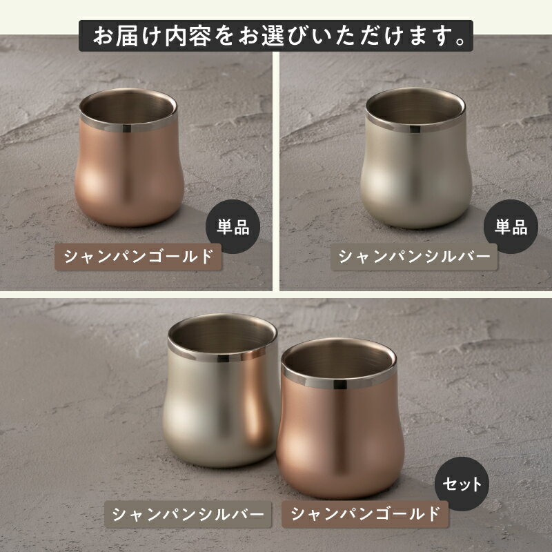 - 【ふるさと納税】 18-8ステンレス 二重構造 エレガンスDXフリーカップペア 約200ml シャンパンシルバー シャンパンゴールド ペア セット タンブラー カップ コップ ステンレス 保温 保冷 結露が出にくい 汚れが付きにくい 高級感 O・S 新潟県 燕市 燕三条
