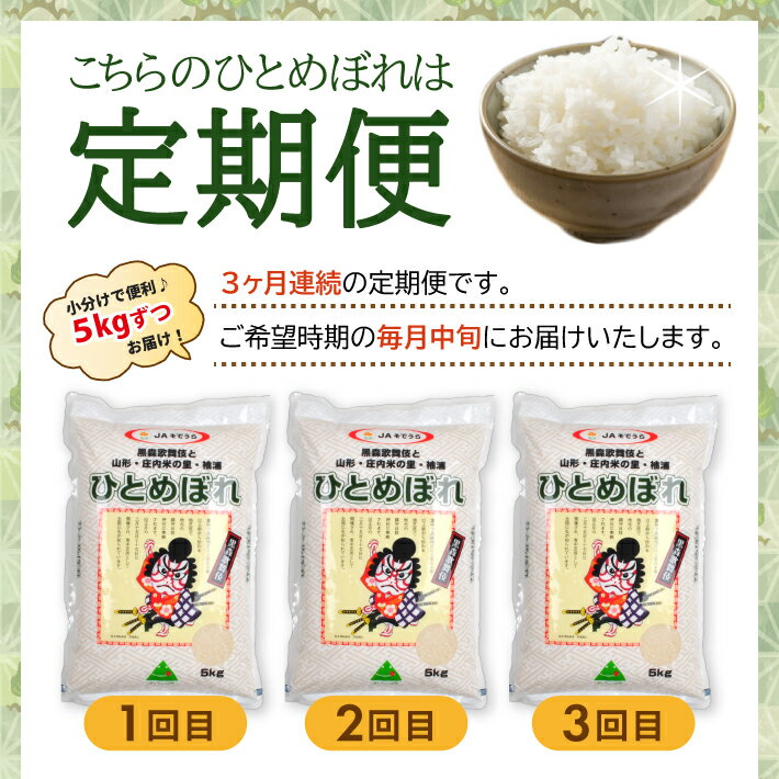 - 【ふるさと納税】≪3ヶ月定期便≫ ひとめぼれ 5kg×3ヶ月連続 計15kg 山形県産 ご希望期間の毎月中旬頃お届け 農協 JA 米 お米 精米 ごはん 白米 東北 酒田市 庄内 3回