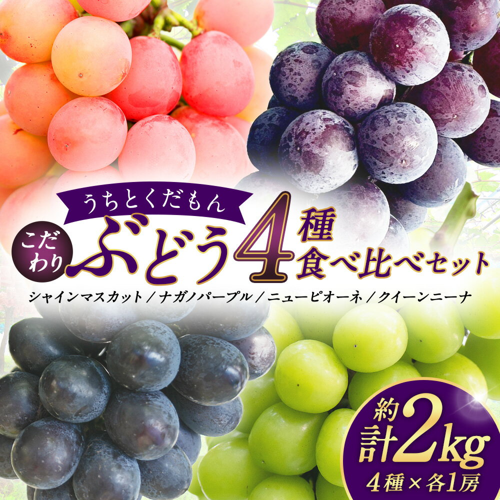 【ふるさと納税】【うちとくだもん】のこだわりぶどう ぶどう4種食べ比べセット 計4房(各1房) 計約2kg シャインマスカット ナガノパープル ニューピオーネ クイーンニーナ ブドウ 葡萄 フルーツ くだもの 冷蔵 送料無料 【2026年10月上旬~11月下旬まで順次発送予定】