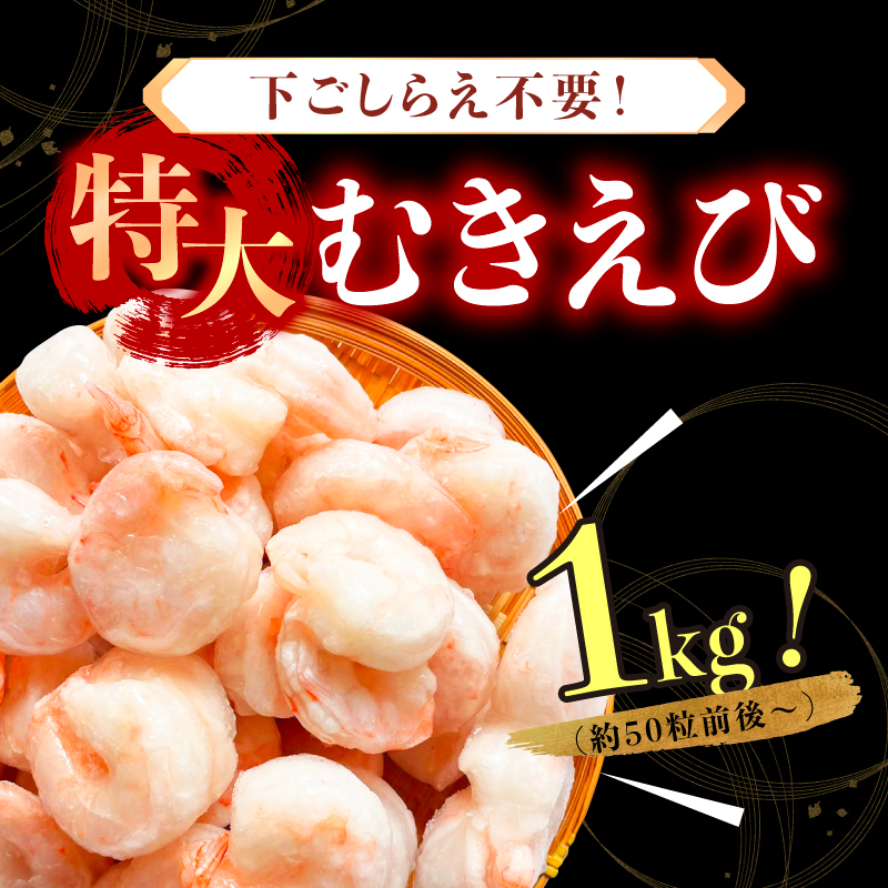 - 特大 バナメイ むきえび 総重量 1kg (解凍後:800g)【ますよね 背ワタなし えび エビ 海老】 [001-a260_(25)]【敦賀市ふるさと納税】