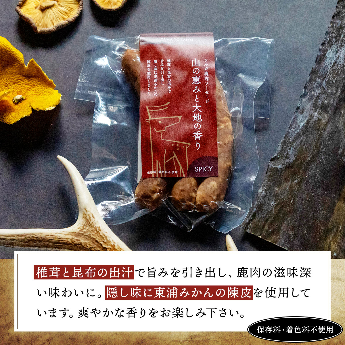 - 【順次発送】山と太陽 鹿肉ソーセージ 「山の恵みと大地の香り」 スパイシー3本×2袋 【 肉 鹿肉 ソーセージ お肉 具材 おつまみ ジビエ お中元 お歳暮 ギフト 贈り物】[103-a006]【敦賀市ふるさと納税】