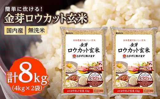 金芽ロウカット玄米(無洗米) 8kg(4kg×2袋)(国内産)_ お米 米 玄米 ロウカット 金芽 国産 ヘルシー カロリーオフ 糖質オフ 健康 ダイエット 人気 送料無料 【1410343】