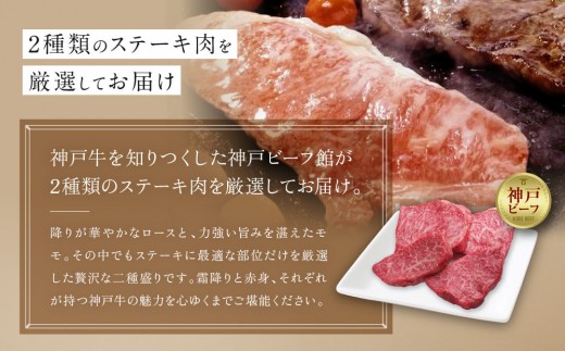 - 【冷蔵便】神戸牛 ステーキ 食べ比べ セット 計600g(ロース&柔らか赤身 150g 各2枚)