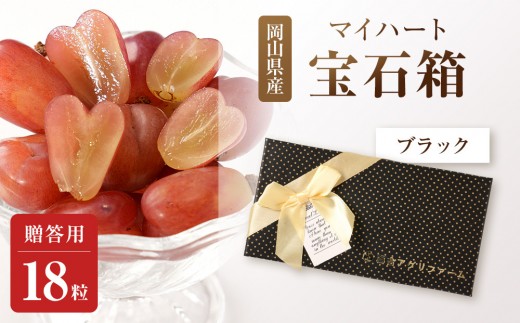 - ぶどう2026年マイハート 宝石箱18粒 大粒厳選秀品 ギフト 贈答用 贈り物 農林大臣賞2回受賞 採りたて発送 農家直送 数量限定 新鮮 岡山 果物 フルーツ 化粧箱 贈答用ブラック