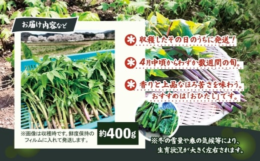 しどけ(モミジガサ) 約400g 瑞々しい山菜の女王 120P3204 / 東北 秋田 大館 山菜 山 自然 春の山菜 おひたし 酢味噌和え しどけ モミジガサ 天ぷら 山菜の女王 シドキ キノシタ モミジグサ タイコウナ トウキチ