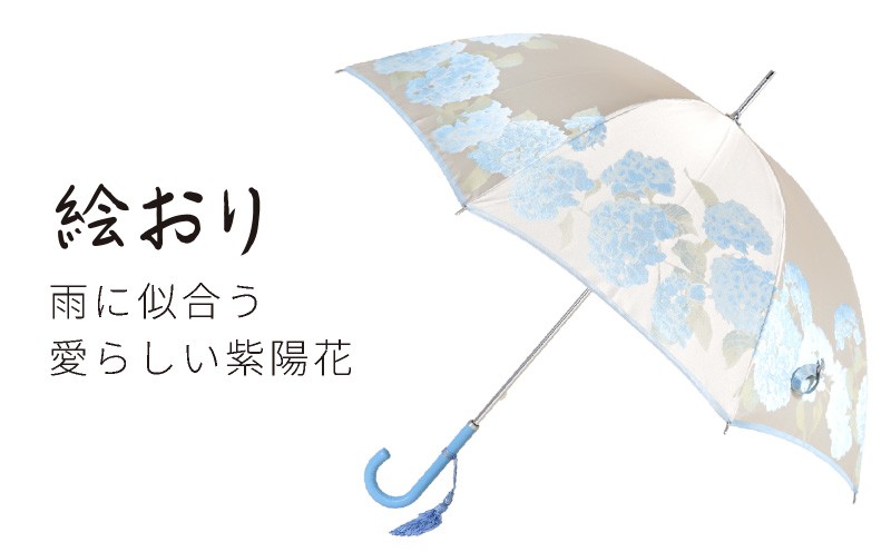 【槙田商店】晴雨兼用長傘 絵おり 紫陽花 ブルー| 日傘 UV プレゼント 化粧箱 ギフト 老舗