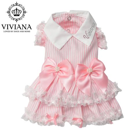 - ドッグウェア「VIVIANA」 ストライプワンピース / Pink