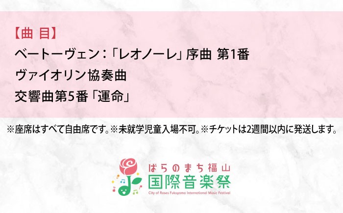 - チケット ばらのまち福山国際音楽祭2026演奏会チケット【5月24日(日) リーデンローズ大ホール フィナーレ・コンサート】 広島県福山市/ばらのまち福山国際音楽祭実行委員会 音楽祭 演奏会 クラシック チケット [BAGA014]