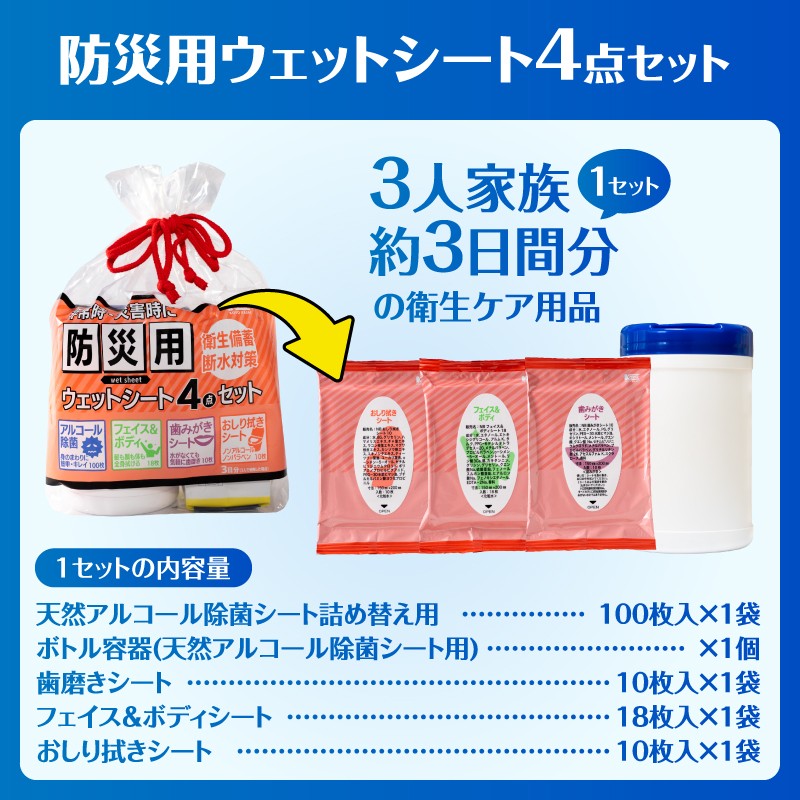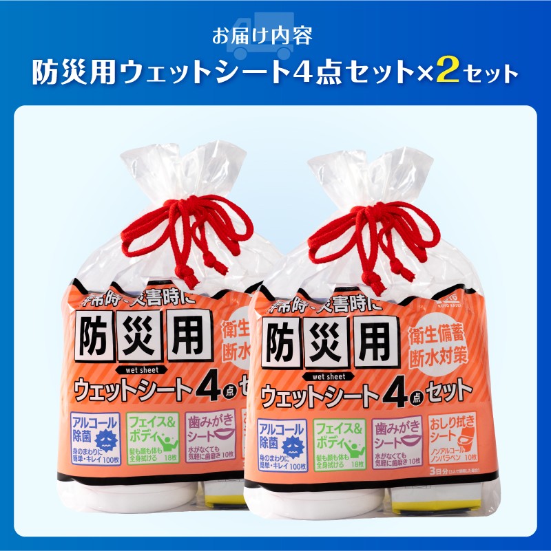 - ウェットシート 防災用 4点セット 2セット 外出 アウトドア 運動後 緊急時 手軽 便利 衛生 防災 断水 備蓄 常備 富士市 [sf002-575]