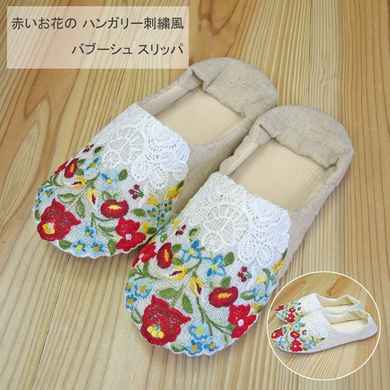 - 足元が可愛くなるレースバブーシュスリッパ《 スリッパ レース ルームシューズ ルームスリッパ 洗濯できる オールシーズン ハンガリー風レース 》【2501N13801】