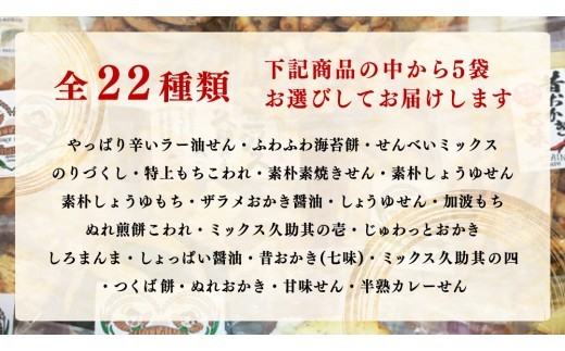 - ひがの製菓厳選!! こだわりの 5袋 セット お菓子 おやつ スナック おかき せんべい 煎餅 割れせん 久助 [BA009ci]