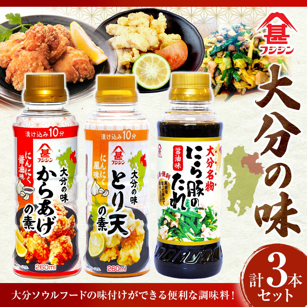 【ふるさと納税】[フジジン]大分の味セット / からあげの素 (260ml) とり天の素 (260ml) にら豚のたれ (255ml) 計3本セット (各1本) 計775ml | 調味料 唐揚げ から揚げ からあげ 漬け込みダレ にら豚 ニラ豚 野菜炒め とり天 料理 詰め合わせ 大分県 臼杵市 送料無料