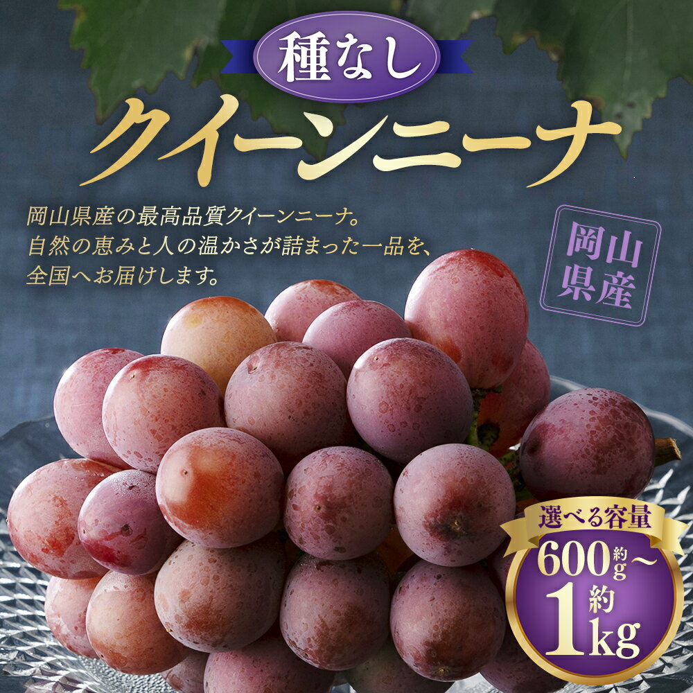 【ふるさと納税】《種なし》岡山県産 クイーンニーナ 【選べる容量】 約600g 約1kg 大粒 ぶどう ブドウ 葡萄 くだもの 果物 果実 フルーツ 冷蔵 国産 岡山県 美咲町 送料無料 【2026年8月下旬-9月下旬発送予定】