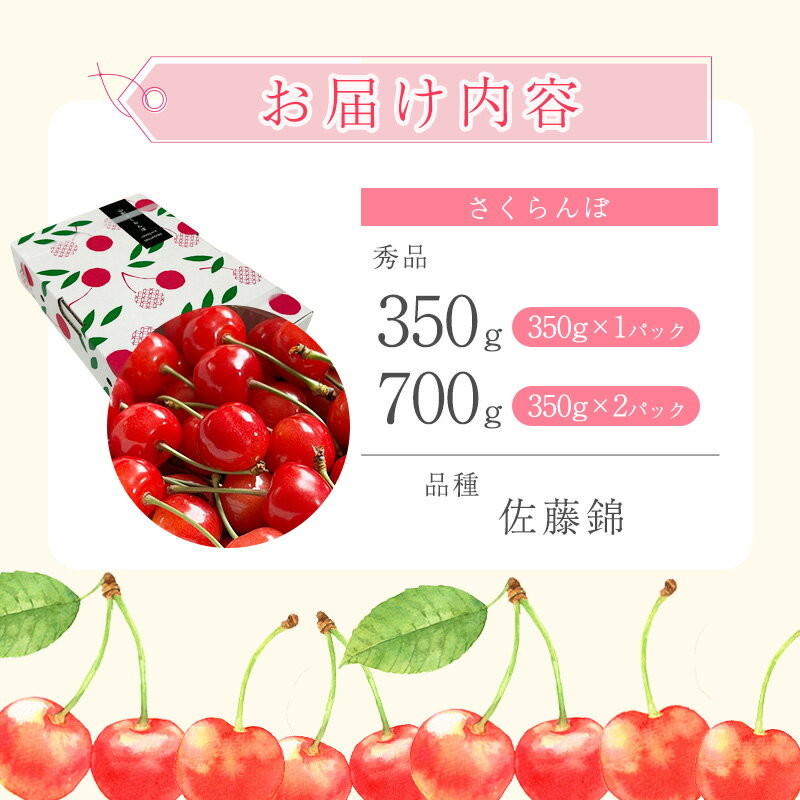 - 【ふるさと納税】【先行予約】令和8年産 さくらんぼ 佐藤錦 Lサイズ以上 350g - 700g バラ詰 山形県産【2026年6月上旬頃から下旬頃発送予定】※配送不可 沖縄・離島フルーツ 果物 果実 山形産 350グラム 700グラム 2026年産 令和8年 直送