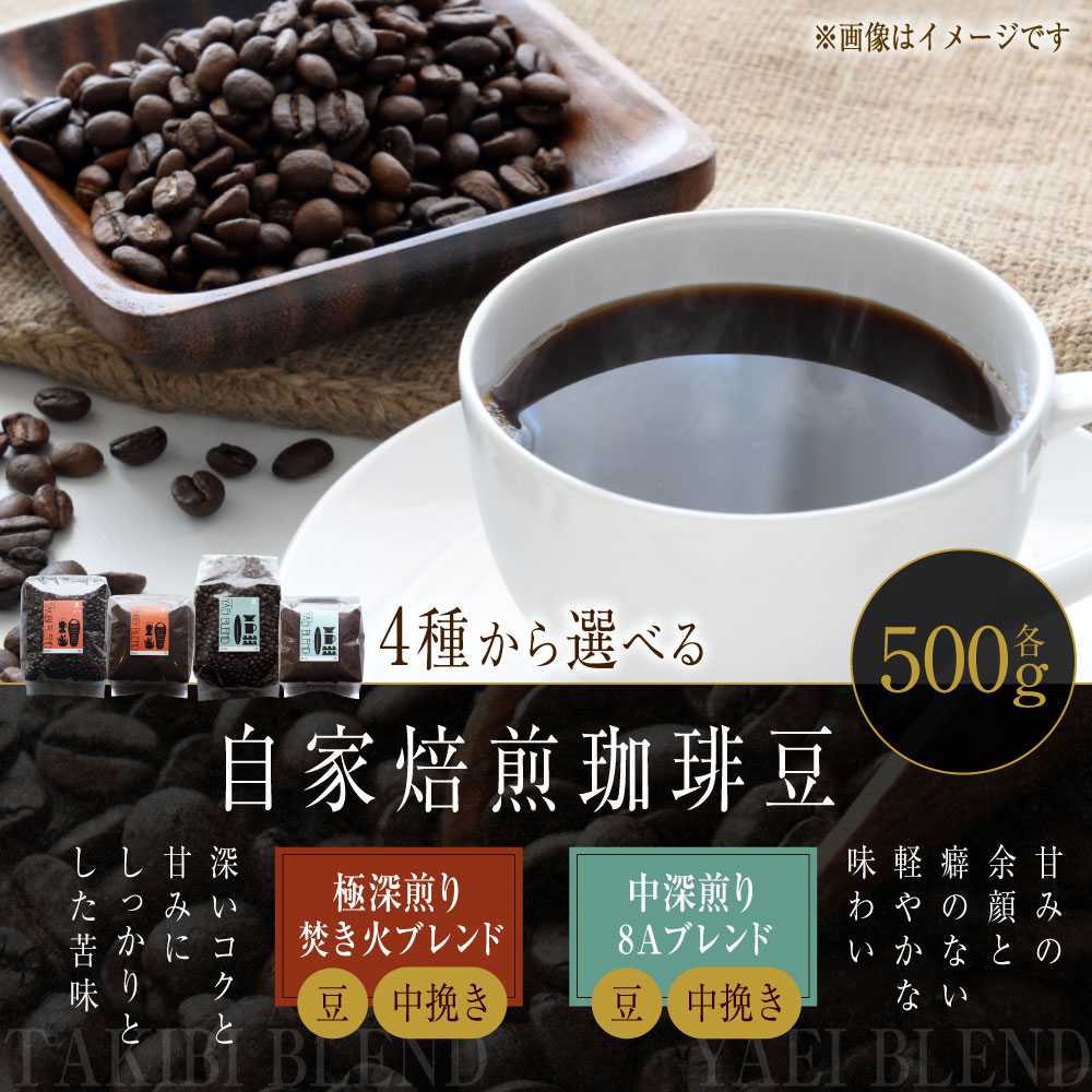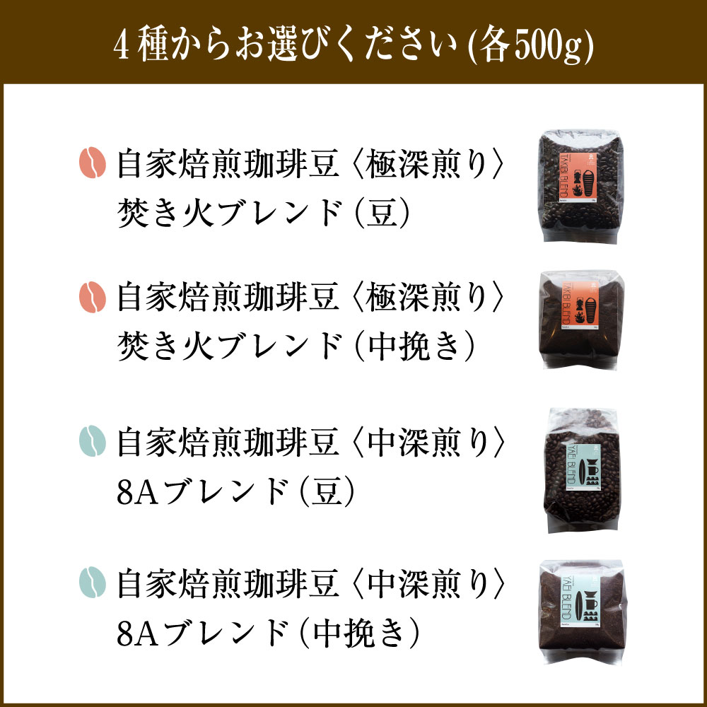 【ふるさと納税】自家焙煎珈琲豆 500g [選べる種類] 〈極深煎り〉 焚き火ブレンド 〈中深煎り〉 8Aブレンド / [選べる豆の挽き方] 豆 中挽き | コーヒー 珈琲豆 飲み物 自家焙煎 マンデリン エチオピア 北海道 小樽市 常温
