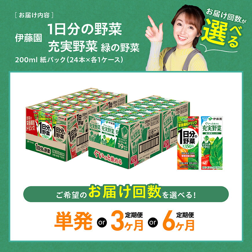 - 【ふるさと納税】 ※回数が選べる※伊藤園「1日分の野菜&緑の野菜」紙パック計48本(各24本) - 伊藤園 飲料類 野菜 緑黄色 野菜 ジュース セット 詰め合わせ 飲みもの