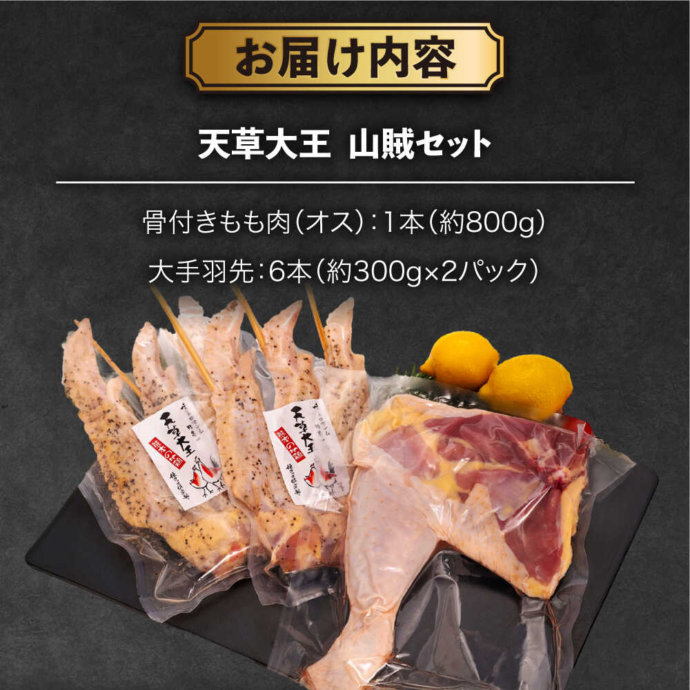 - 【ふるさと納税】天草大王【山賊セット】幻の鶏 キャンプ BBQ 骨付き もも肉 約800g!! 大手羽先 3本×2セット【くまもと食彩の力】[AYAN035] 鶏肉 鶏 とり 肉 アウトドア キャンプ バーベキュー 手羽先 もも 冷凍 国産 熊本