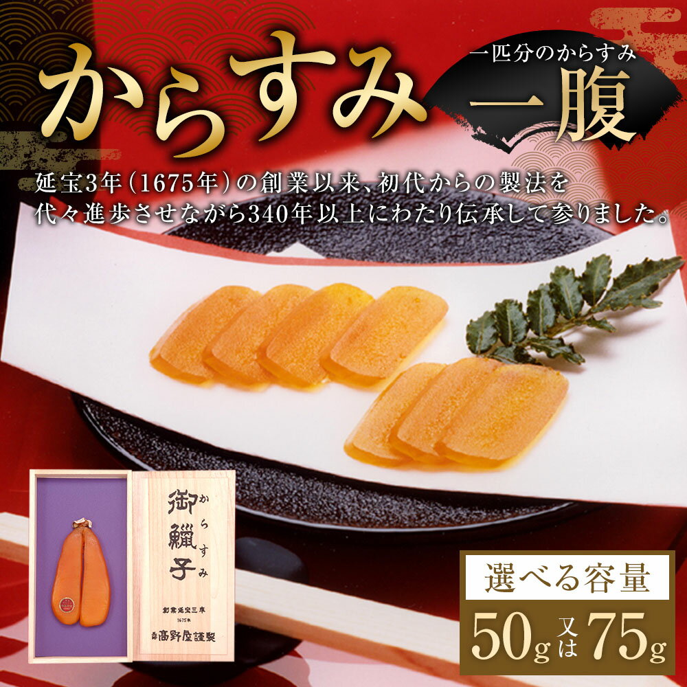 【ふるさと納税】からすみ 一腹 選べる内容量 ( 50g×1個 / 75g×1個 ) | 本からすみ ぼら 珍味 料理 パスタ 酒 つまみ ギフト おつまみ 長崎県 長崎市 送料無料